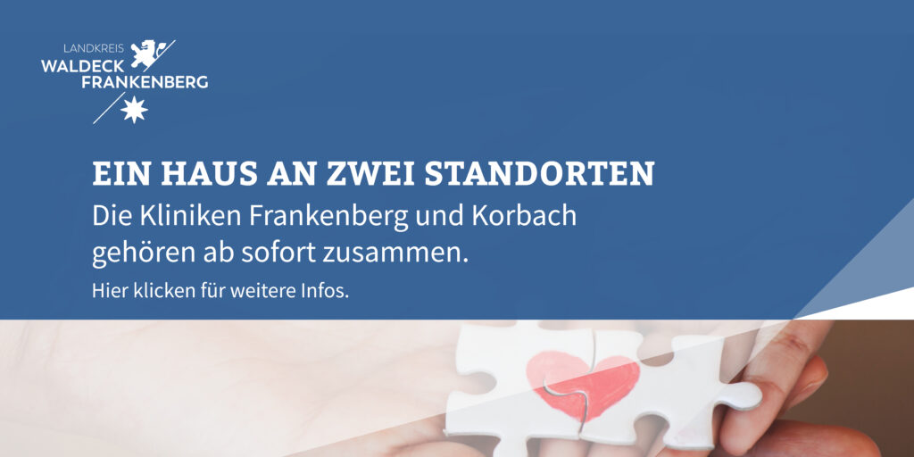 Zum 1.1.2026 fusionieren das Stadtkrankenhaus Korbach und das Kreiskrankenhaus Frankenberg zu einem Haus an zwei Standorten. Für unsere Patienten und die stationäre Versorgung der Menschen in unserer Region.